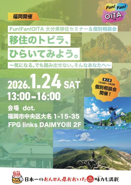 ※お申込み後、「受付完了メール」が送信されます。届かなかった場合は恐れ入りますが、大分県福岡事務所(092-721-0041)までご連絡をお願いします。